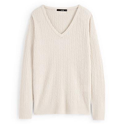 韩版细绞花圆领套头衫 浅杏色