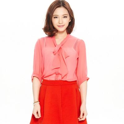 飘带领浪漫优雅雪纺中袖衬衫 胭脂红