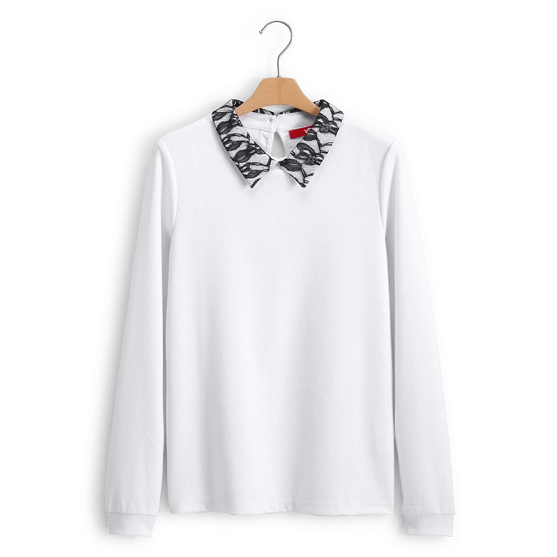 [VT]甜美蕾丝领长袖T恤(女款) 白色/黑色