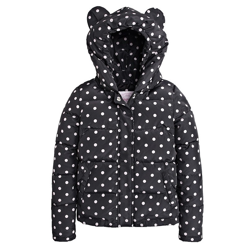 • 可爱圆点连帽短款羽绒服 黑色/米色波点