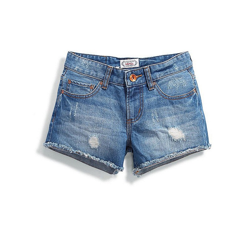 五袋水洗毛边合体牛仔短裤女款VJ247 中蓝色