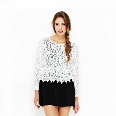 JX假两件套蕾丝拼接连衣裙 白色/黑色