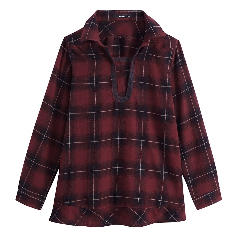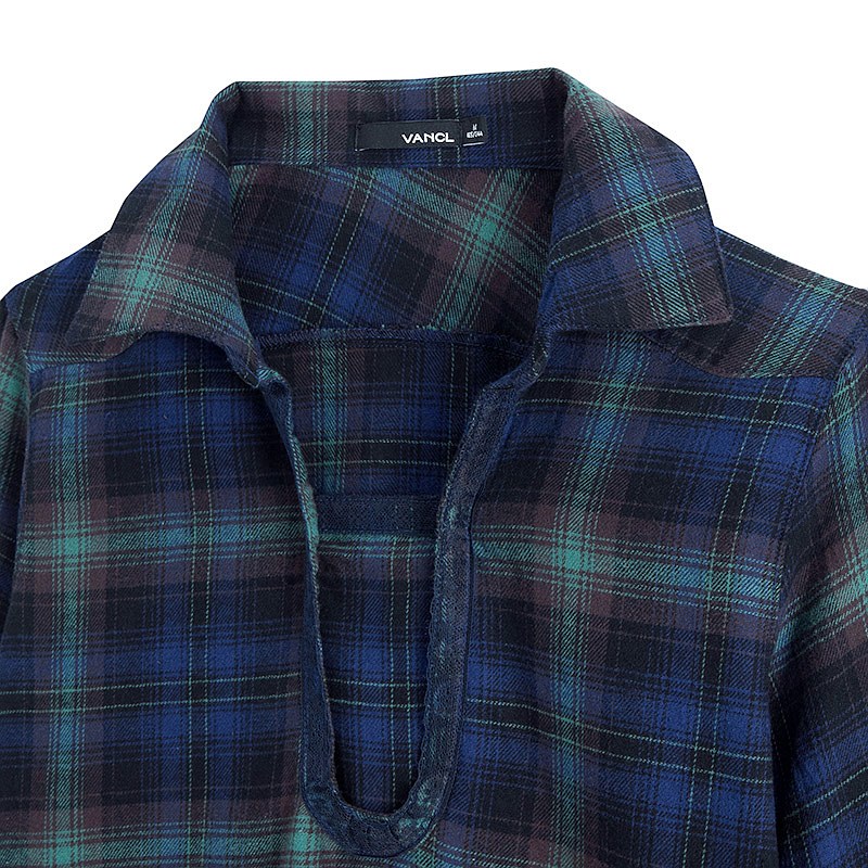 2014新款女衬衫。精选全棉材质,柔软亲肤、舒适透气。衣物表面静物绒面处理,触感更加柔软。采用流行的大格纹,细节之处配以蕾丝装饰,充分显示女性的柔性之美